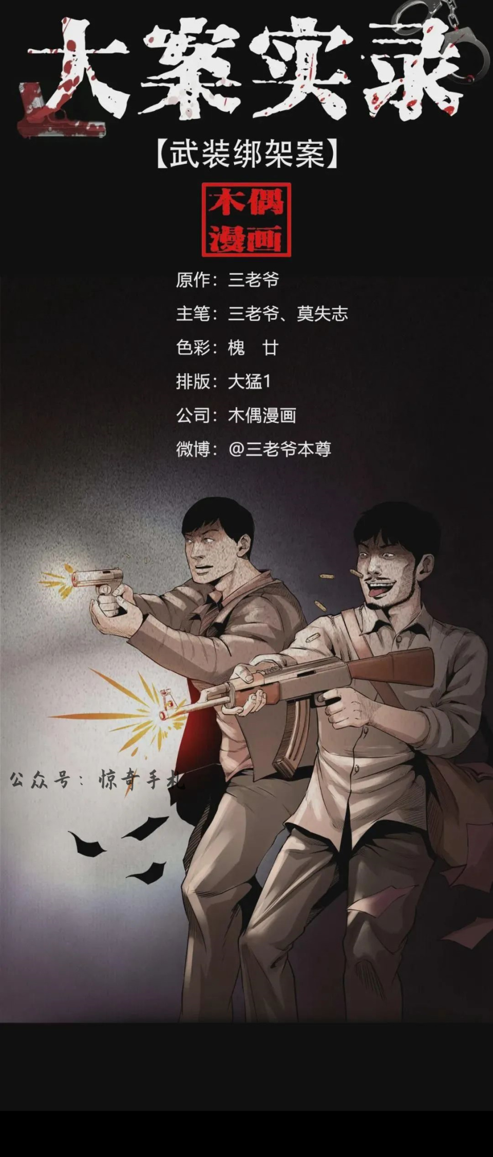 《大案实录》是三老爷收集整理了国内外百余起具有代表性的刑事案件,以这些真实案例为原型改编创作的纪实风格漫画。以写实的手法还原了案件的发生过程以及案犯的内心写照,跟随三老爷的画笔一起走进案发现场吧。