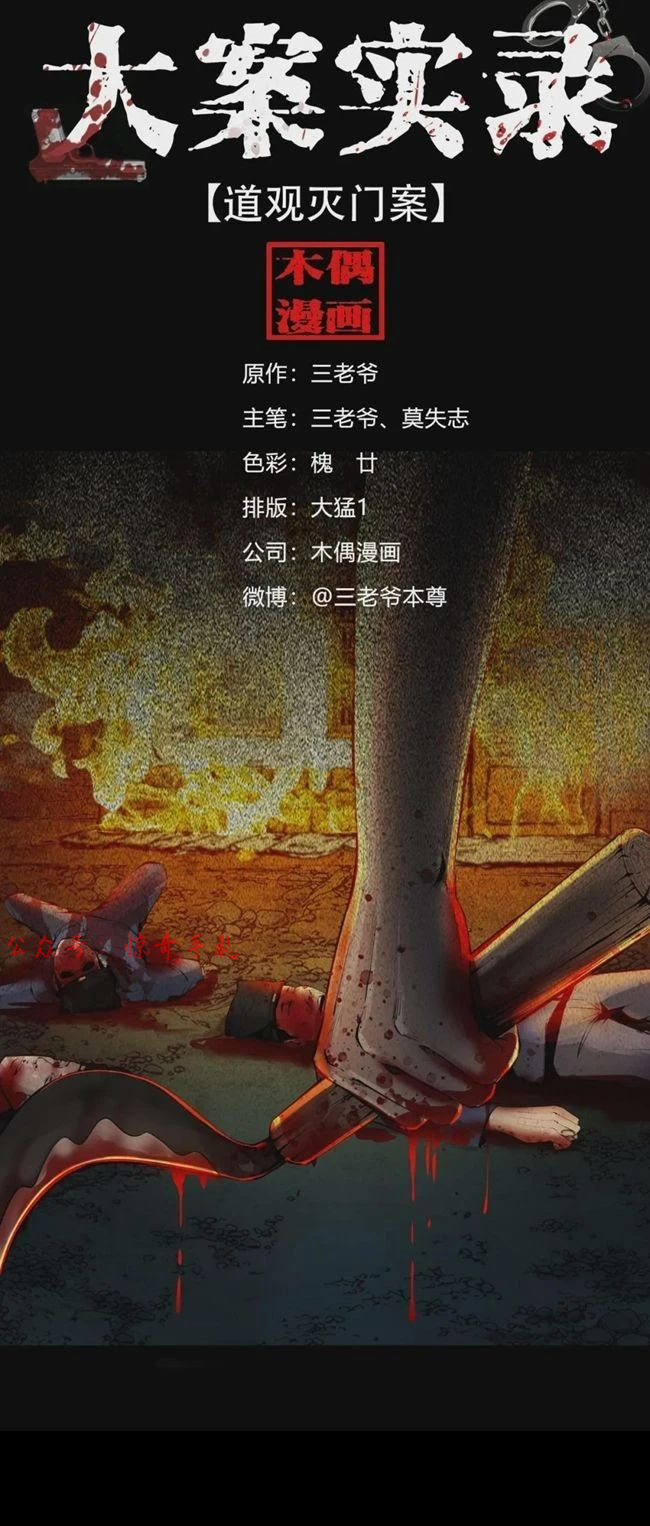 《大案实录》是三老爷收集整理了国内外百余起具有代表性的刑事案件,以这些真实案例为原型改编创作的纪实风格漫画。以写实的手法还原了案件的发生过程以及案犯的内心写照,跟随三老爷的画笔一起走进案发现场吧。