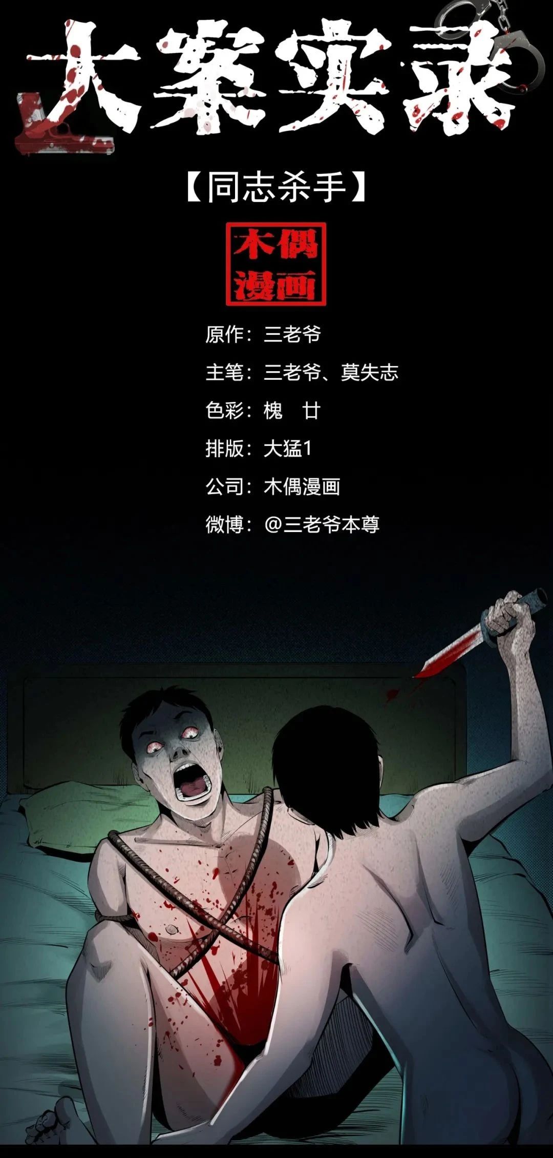 《大案实录》是三老爷收集整理了国内外百余起具有代表性的刑事案件,以这些真实案例为原型改编创作的纪实风格漫画。以写实的手法还原了案件的发生过程以及案犯的内心写照,跟随三老爷的画笔一起走进案发现场吧。