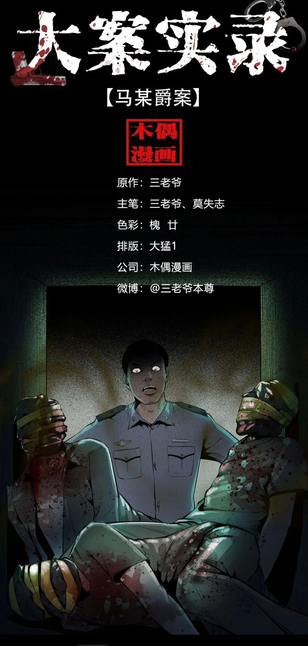 《大案实录》是三老爷收集整理了国内外百余起具有代表性的刑事案件,以这些真实案例为原型改编创作的纪实风格漫画。以写实的手法还原了案件的发生过程以及案犯的内心写照,跟随三老爷的画笔一起走进案发现场吧。