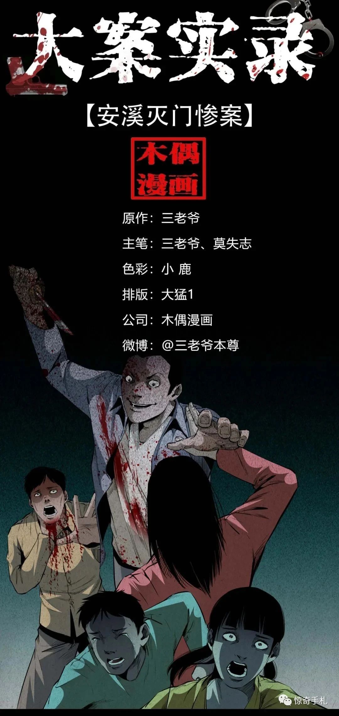 《大案实录》是三老爷收集整理了国内外百余起具有代表性的刑事案件,以这些真实案例为原型改编创作的纪实风格漫画。以写实的手法还原了案件的发生过程以及案犯的内心写照,跟随三老爷的画笔一起走进案发现场吧。