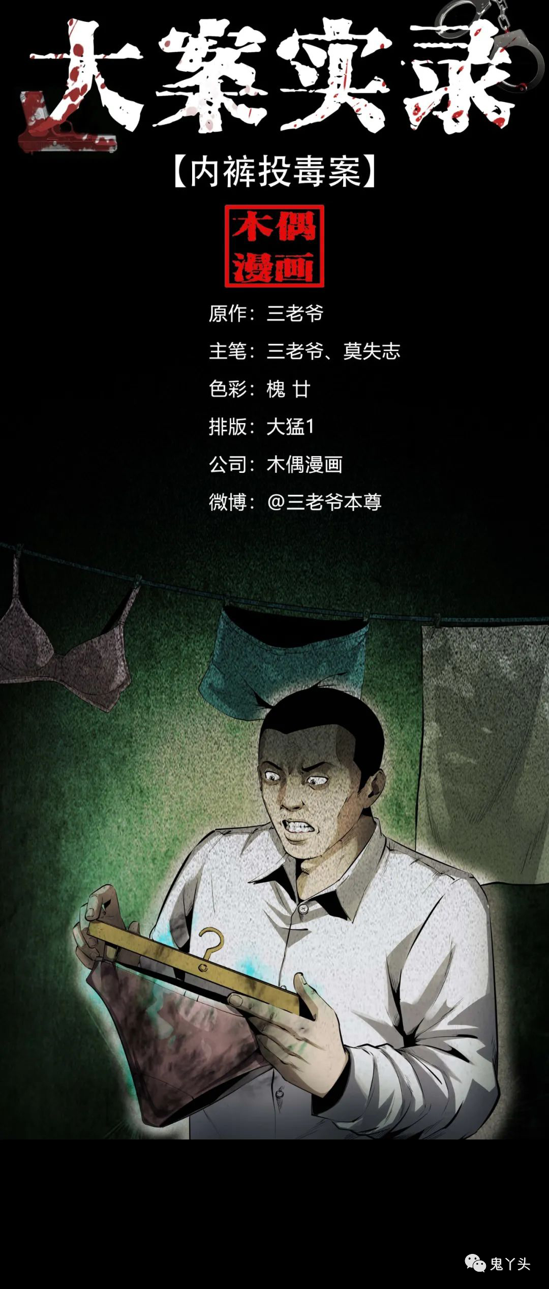 《大案实录》是三老爷收集整理了国内外百余起具有代表性的刑事案件,以这些真实案例为原型改编创作的纪实风格漫画。以写实的手法还原了案件的发生过程以及案犯的内心写照,跟随三老爷的画笔一起走进案发现场吧。