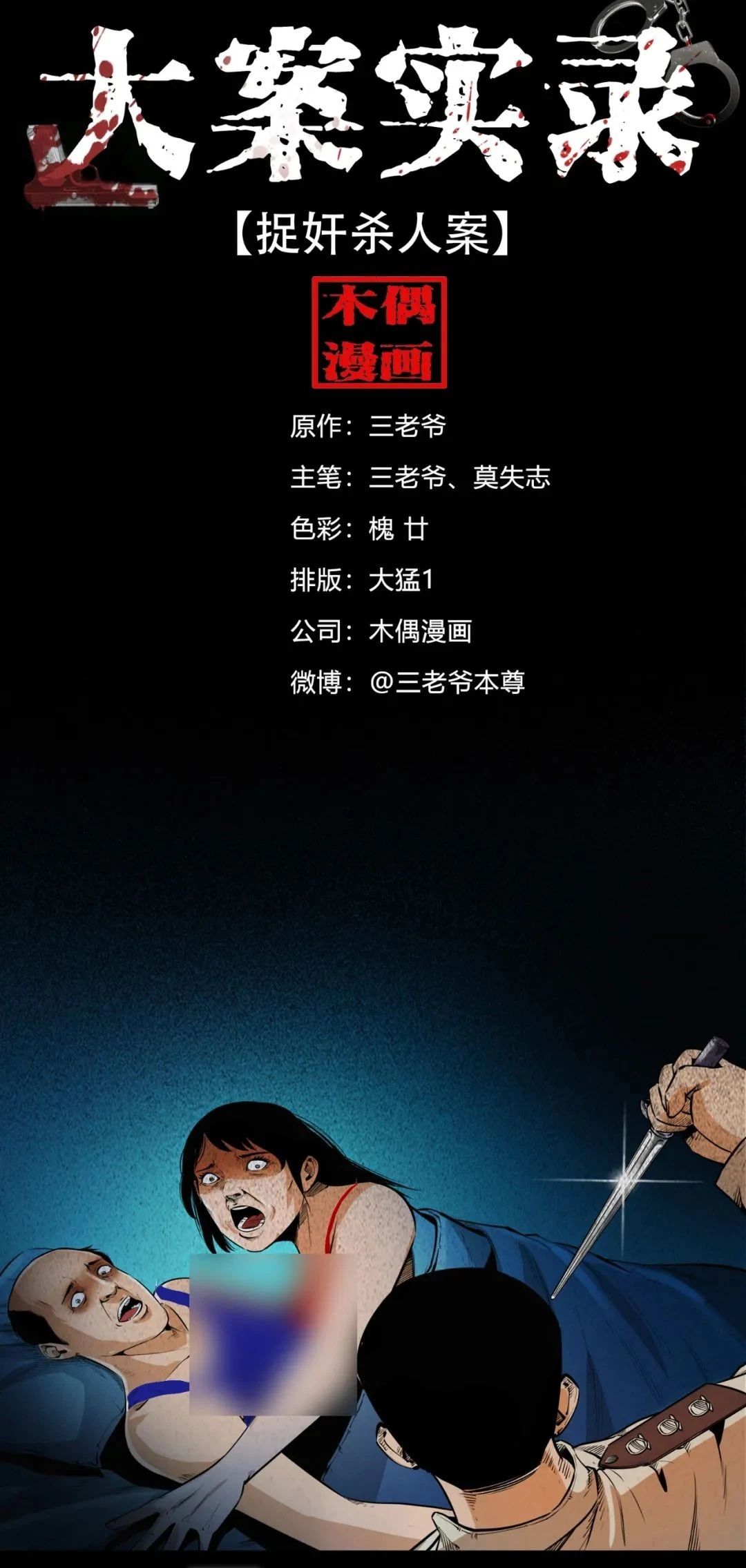 《大案实录》是三老爷收集整理了国内外百余起具有代表性的刑事案件,以这些真实案例为原型改编创作的纪实风格漫画。以写实的手法还原了案件的发生过程以及案犯的内心写照,跟随三老爷的画笔一起走进案发现场吧。